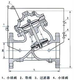 隔膜式可調減壓穩壓閥是安裝于高層建筑給排水系統管道上,將進口壓力減至某一需要的出口壓力的特種閥門。該閥門依靠本身能量使出口壓力保持穩定在設定值,即出口壓力不因進口壓力及流量的變化而變化,并且閥門控制系統的進口處裝有一個自清潔濾網,利用流體特性,使比重較大、直徑較大的懸浮顆粒不會進入控制系統,確保系統循環通暢無阻,使閥門能安全可靠地運行。系統動作敏捷、使用壽命長。