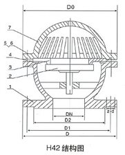 底閥由閥估,閥瓣,閥蓋,襯套,密封圈等零件組成,詳見下圖水源的水從閥蓋進入閥體。在流體的壓力作用下,閥瓣打開水,當示停后出口管內的壓力將閥瓣迅速關閉,液體將不會倒回水源,起到了即暢通抽水又節約水能損失的作用.