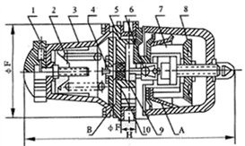 QFH型空氣過濾減壓器是按力平衡原理設(shè)計(jì)的。當(dāng)來(lái)自空氣壓縮機(jī)的氣壓接到輸入端后,進(jìn)入過濾氣室(A)進(jìn)行除水、油、塵處理。由于給定彈簧(3)產(chǎn)生的力將球閥(7)推開,從而氣流經(jīng)球閥流入輸出管道,并通過反饋導(dǎo)管進(jìn)入反饋氣室(B),此時(shí)氣壓作用在膜片(5)上的力與給定彈簧的力達(dá)到平衡。但由于輸出壓力受負(fù)載流量變化的影響,出現(xiàn)輸出壓力高于或低于給定值。如輸出壓力低于給定值,則膜片(5)上的力與給定彈簧的力失去平衡,膜片向下位移,使球閥(7)的開度較原來(lái)更大些,進(jìn)行氣壓補(bǔ)償。如輸出壓力高于給定值,則膜片(5)上的力與給定彈簧的力又失去平衡,膜片向上位移,此時(shí)閥桿(10)和膜片硬蕊(11)離開,氣壓由小孔放入大氣,后達(dá)到平衡為止,因而輸出壓力一直能穩(wěn)定在所需給定值上。